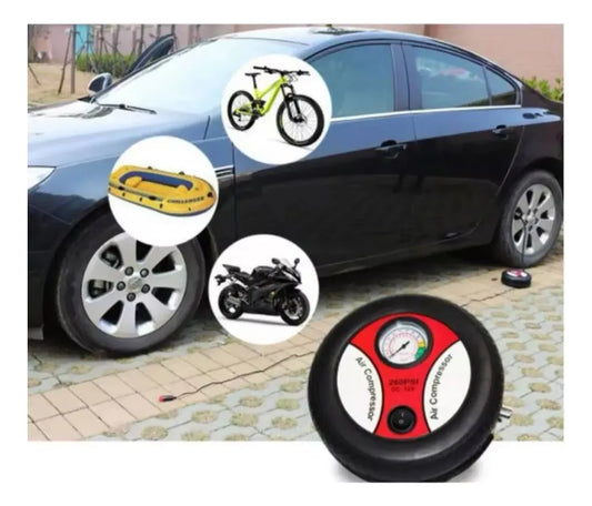 Compresor Rojo De Aire Portátil 12v 260 Psi Para Llantas Rojo 12v