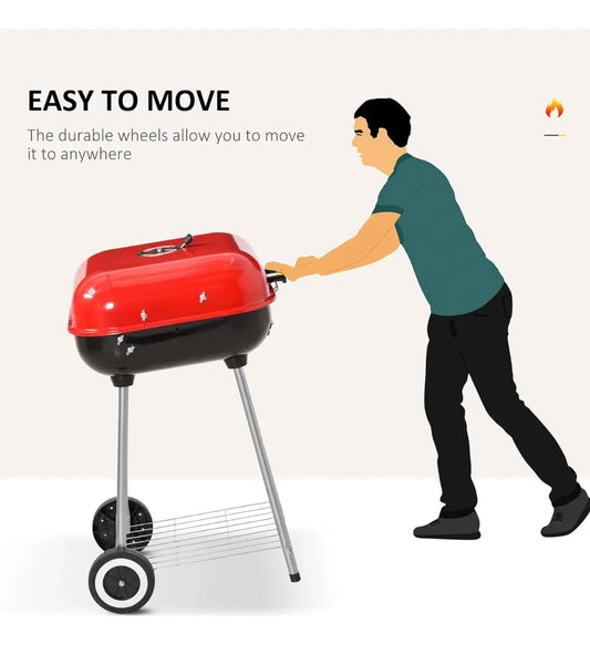 Asador Cuadrado Portatil Ruedas Negro/rojo Colores