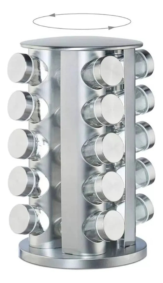 Especiero Giratorio 20 Condimentos Vidrio Y Acero Inoxidable Plateado