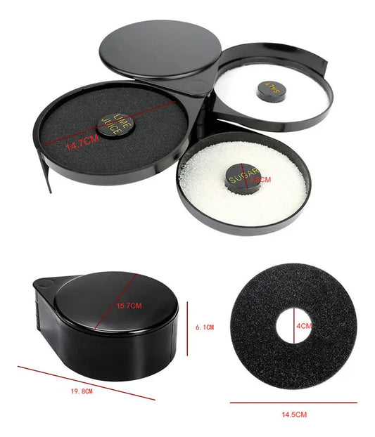 ORGANIZADOR DE CONDIMENTOS X7 EN VIDRIO CON TAPA Y DISPENSADOR