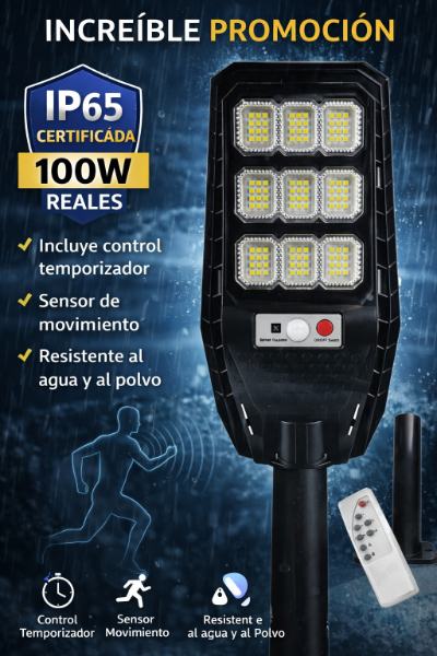 Lámpara Solar LED 100W IP65 – Alta Potencia y Ahorro N-525 Energético