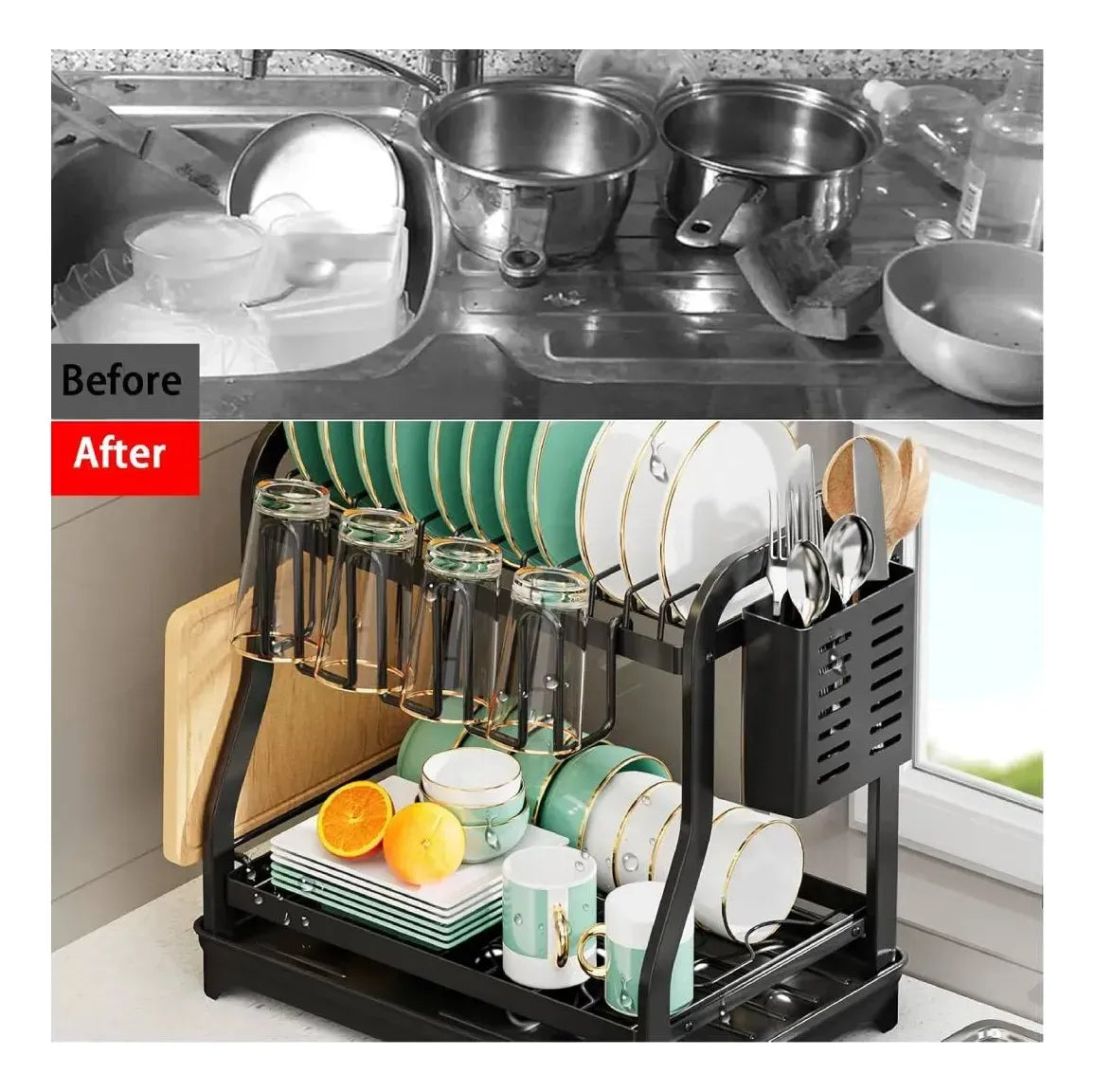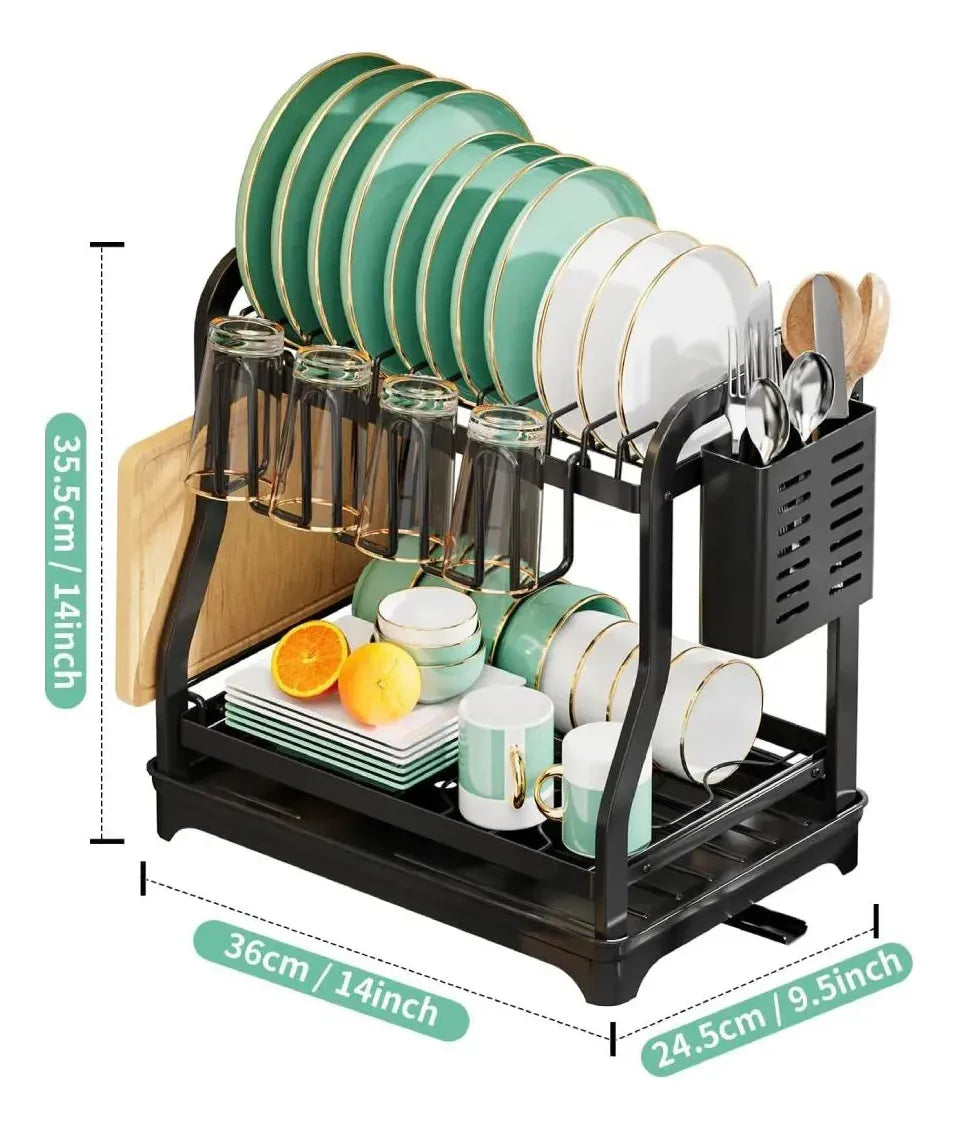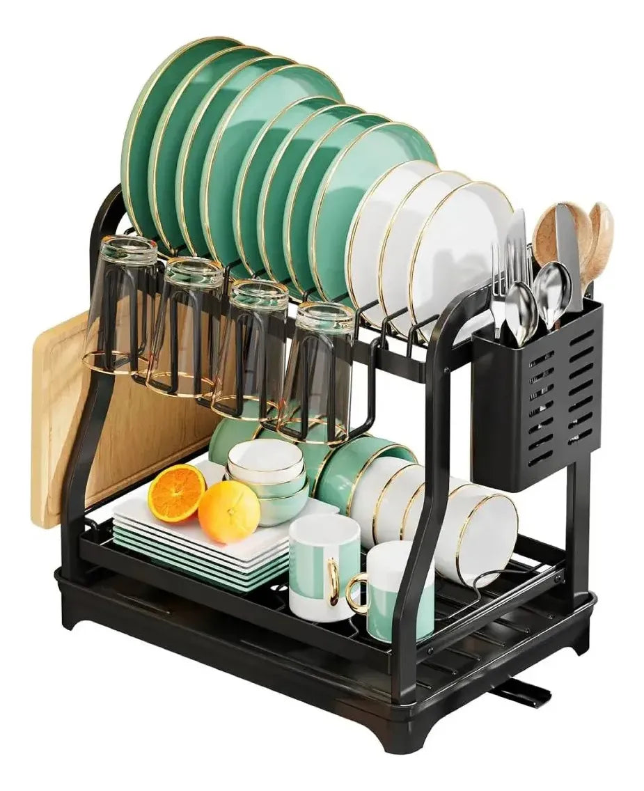 Escurridor 2 Niveles 1208 De Acero Inoxidable Seca Platos Negro