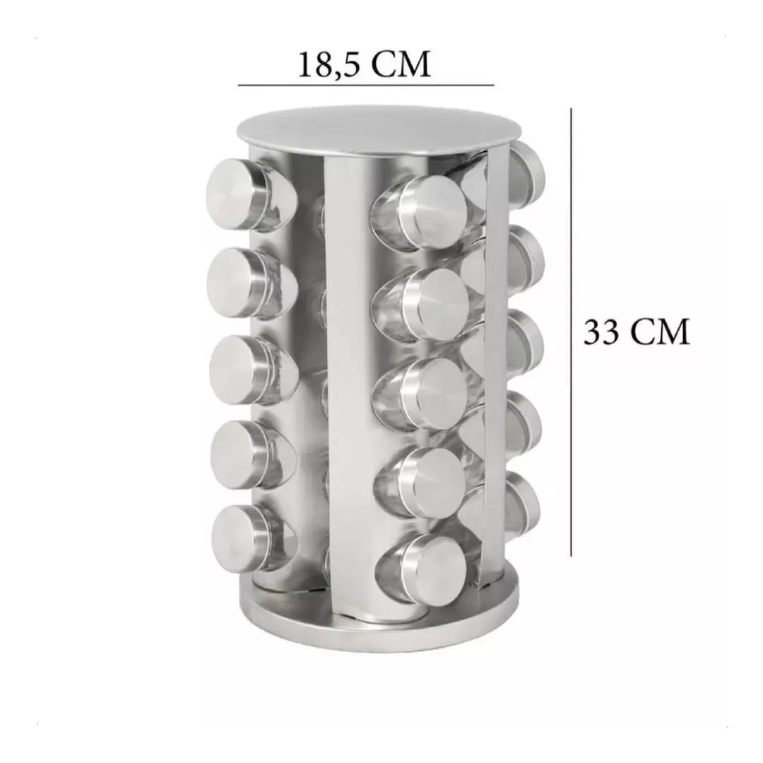 Especiero Giratorio 20 Condimentos Vidrio Y Acero Inoxidable Plateado