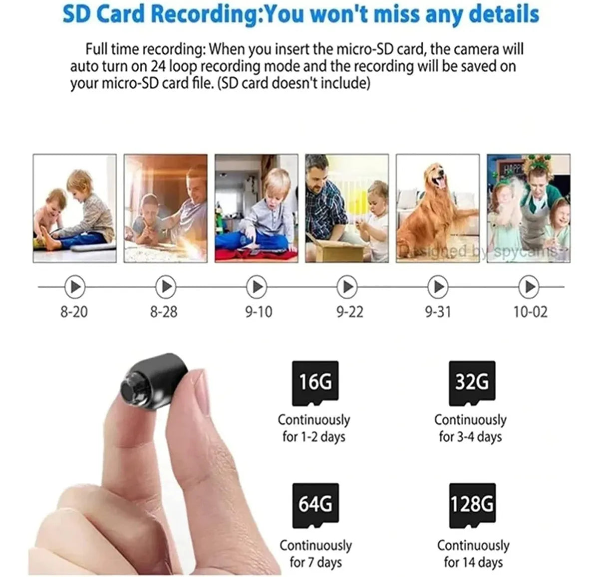 - Visión nocturna con 6 LEDs infrarrojos para grabaciones en la oscuridad.