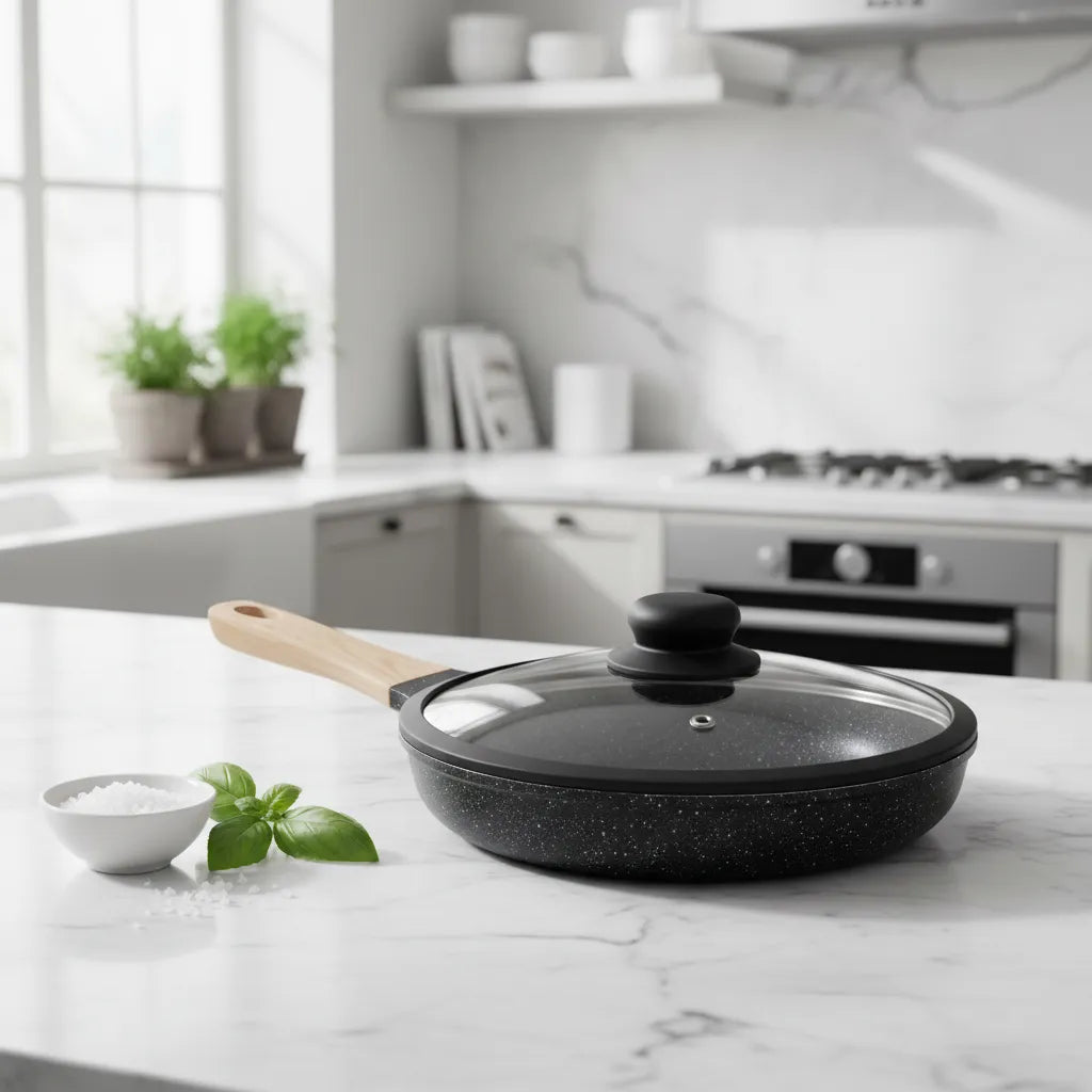 Sartén Antiadherente Negro 20 Cm Tapa De Vidrio Tipo Piedra Negro
