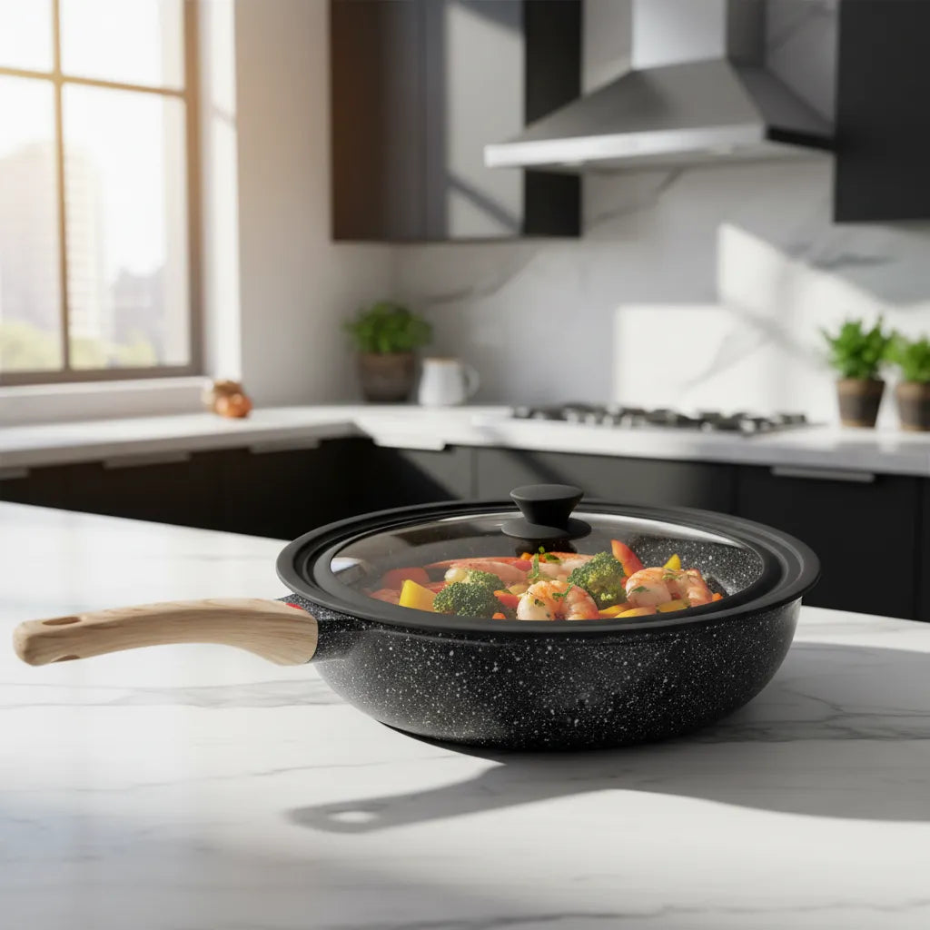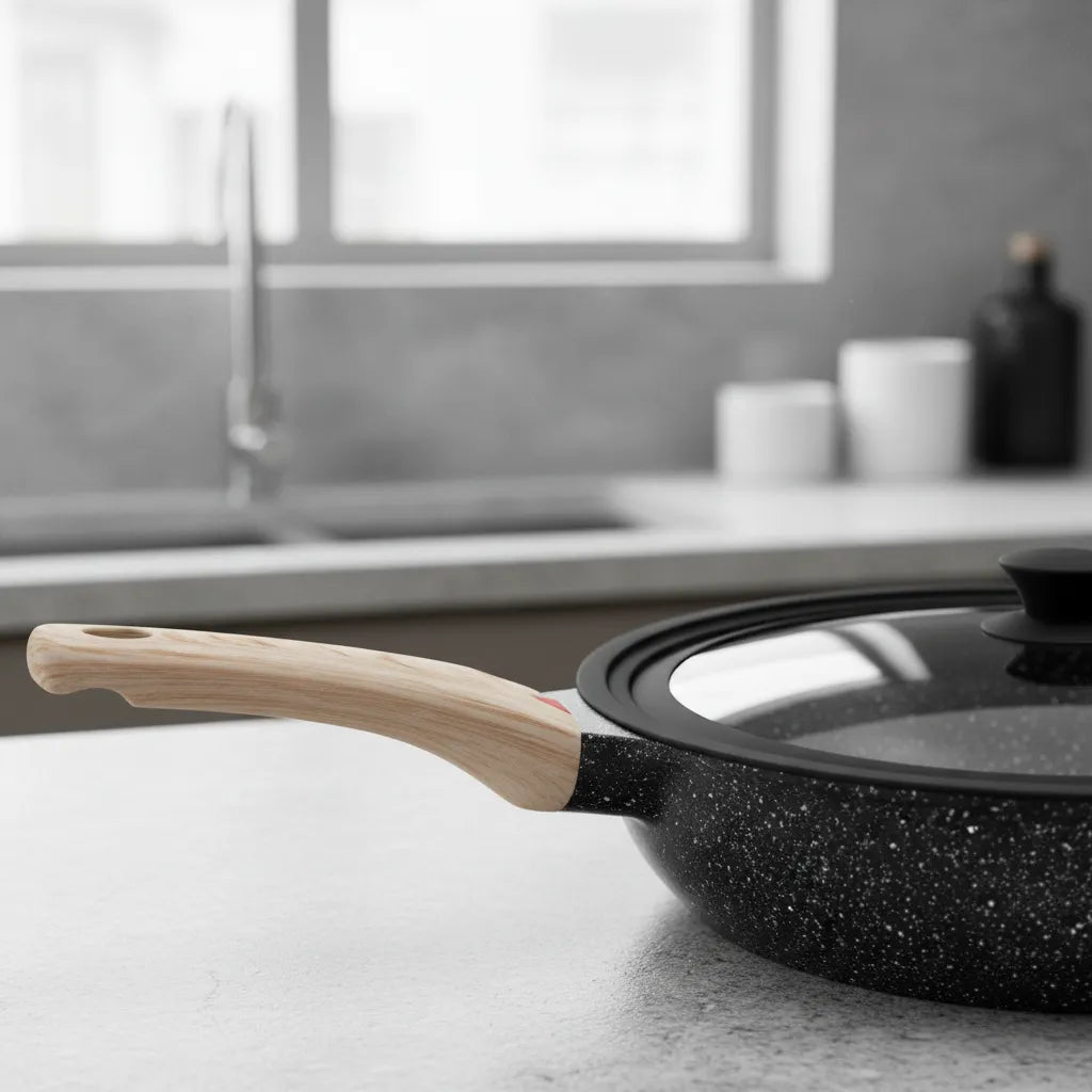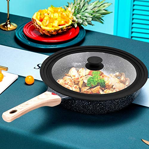 Sartén Antiadherente Tipo Piedra Con Tapa De Vidrio Negro